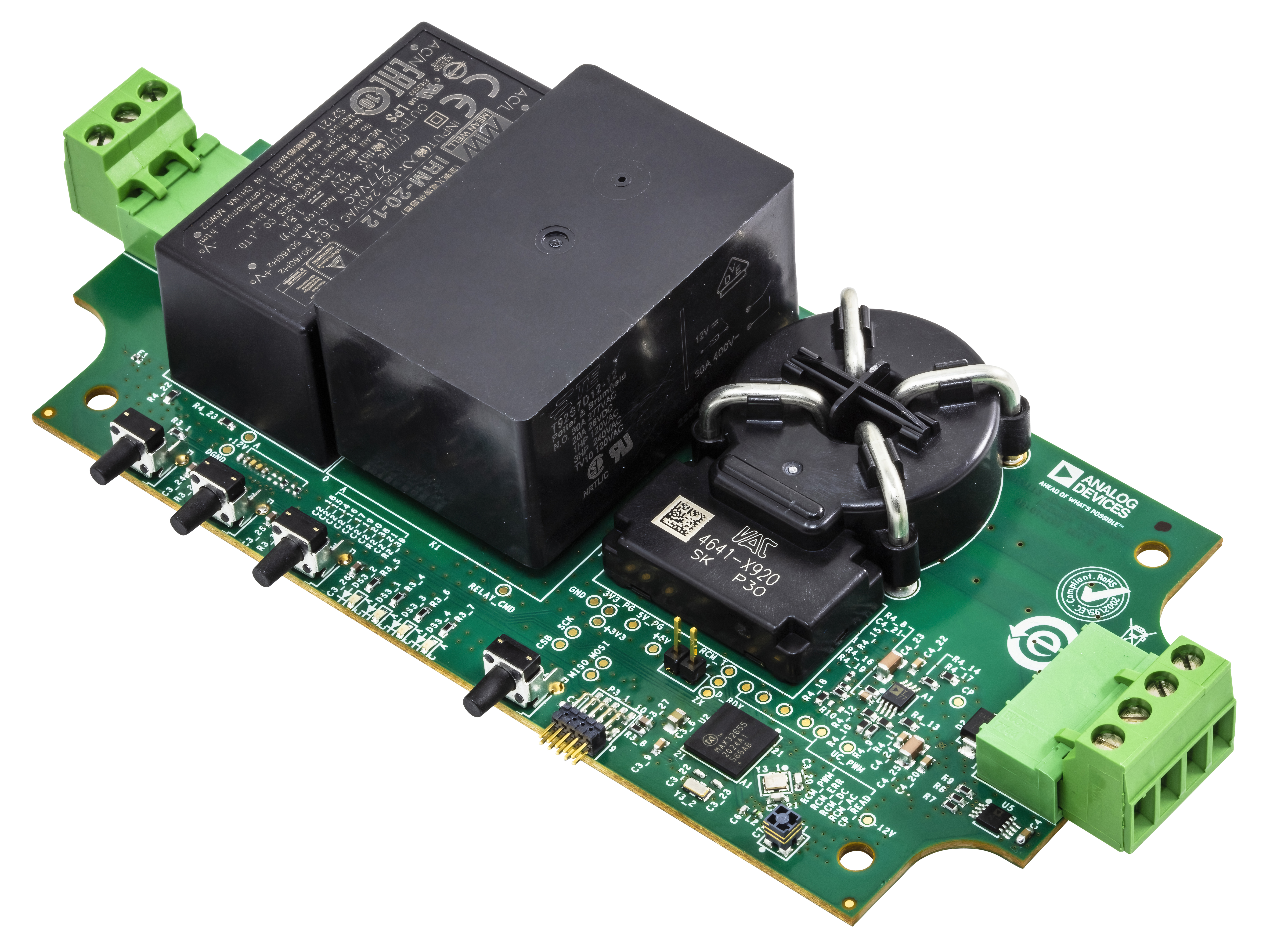 The system includes the ADE9113 3-channel isolated sigma-delta (Σ-Δ) ADC for voltage and current measurement on the single-phase power input and measurement of the relay voltage for solder contacts detection and relay state of health. Safe operation is enabled by the inclusion of a 6mA DC / 30mA rms RCD. Detection of overvoltage, undervoltage, overcurrent, overtemperature, and EV diode presence are also available.