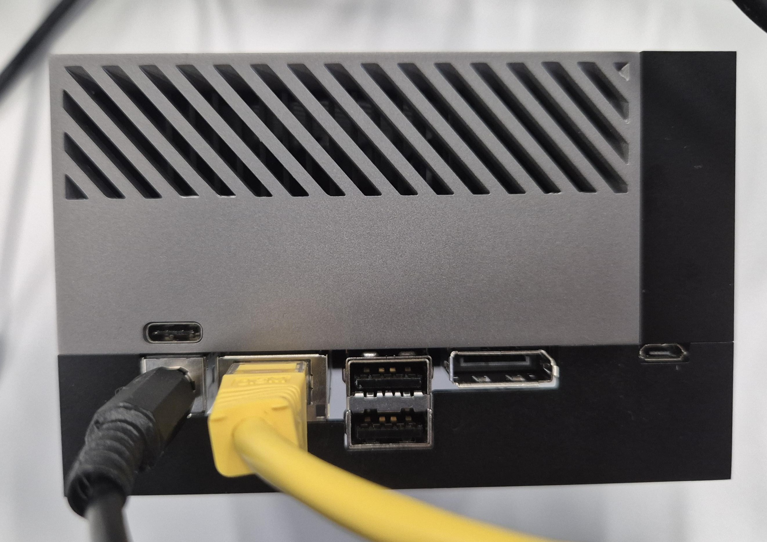 Connect the DC jack power supply and the Ethernet cable to the AGX Orin: