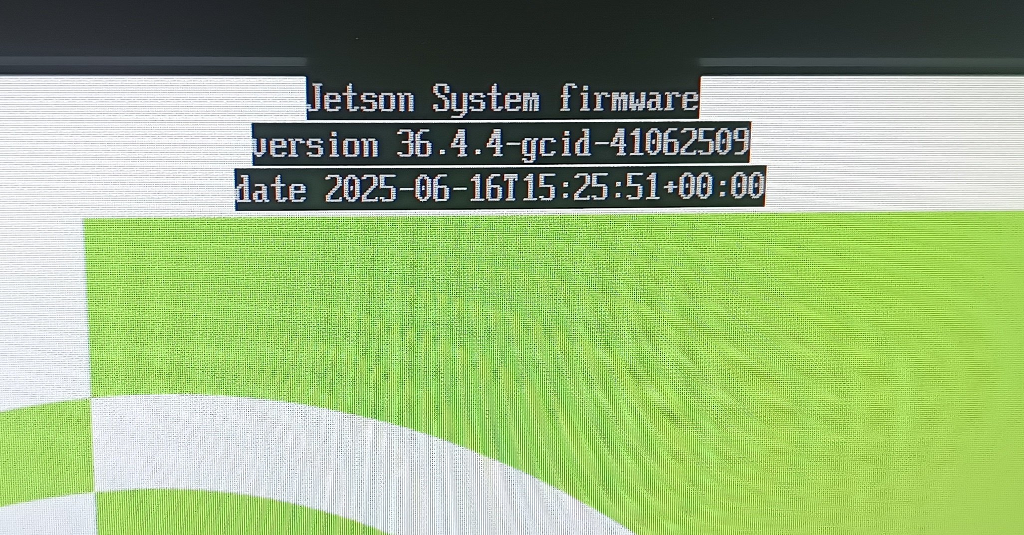 The Jetson L4T version (36.4.4) and the timestamp (2025-06-16) of the new bootloader are visible on the first screen displayed after powerup/restart.