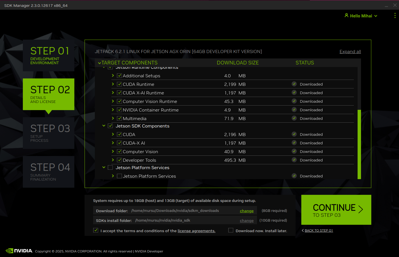 on STEP 02, select all checkboxes in all tree controls except Jetson Platform Services