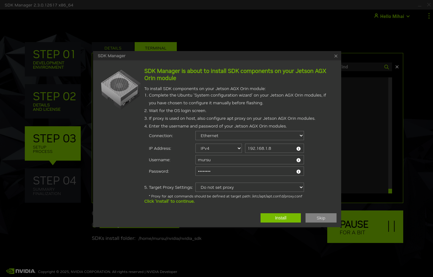 1.3) Installation procedure with Nvidia SDK Manager